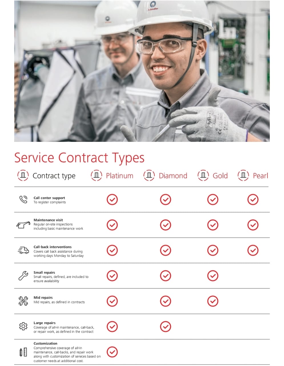 Our maintenance contracts are flexible in both features & options, for any brand and model. We offer a broad range of maintenance contracts in India, from the highly standardized all-in-one to the individually tailored to meet your specific building requirements, traffic patterns, equipment condition, and more.
